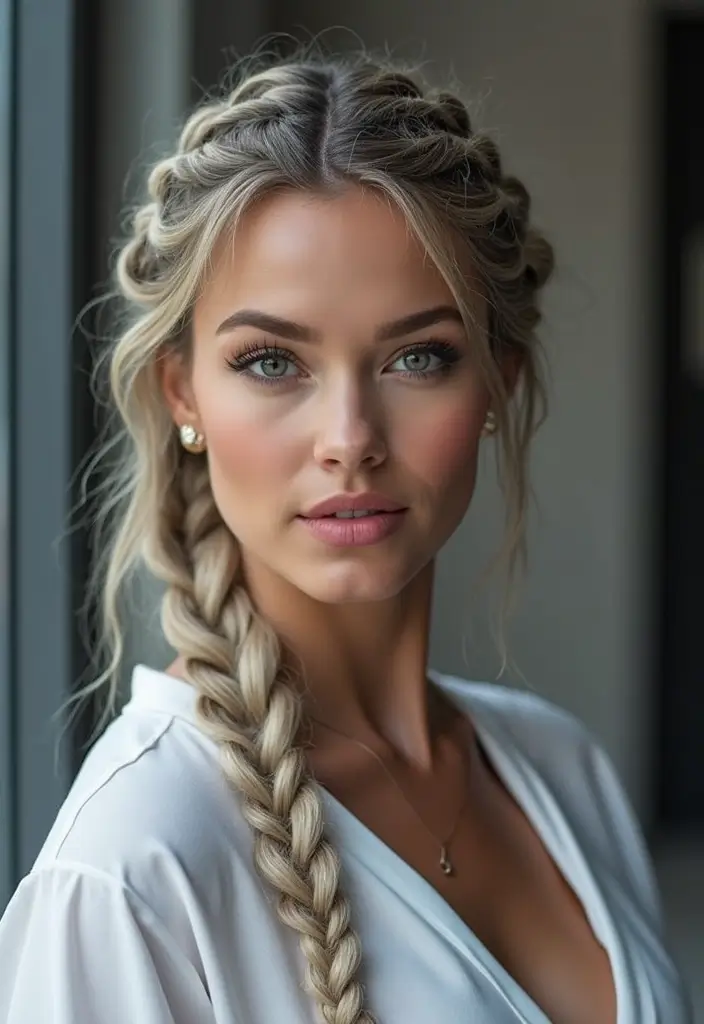 This hairstyle can be worn with loose strands for a romantic look or tightly braided for an elegant finish. The silver adds a magical touch that enhances the overall aesthetic.