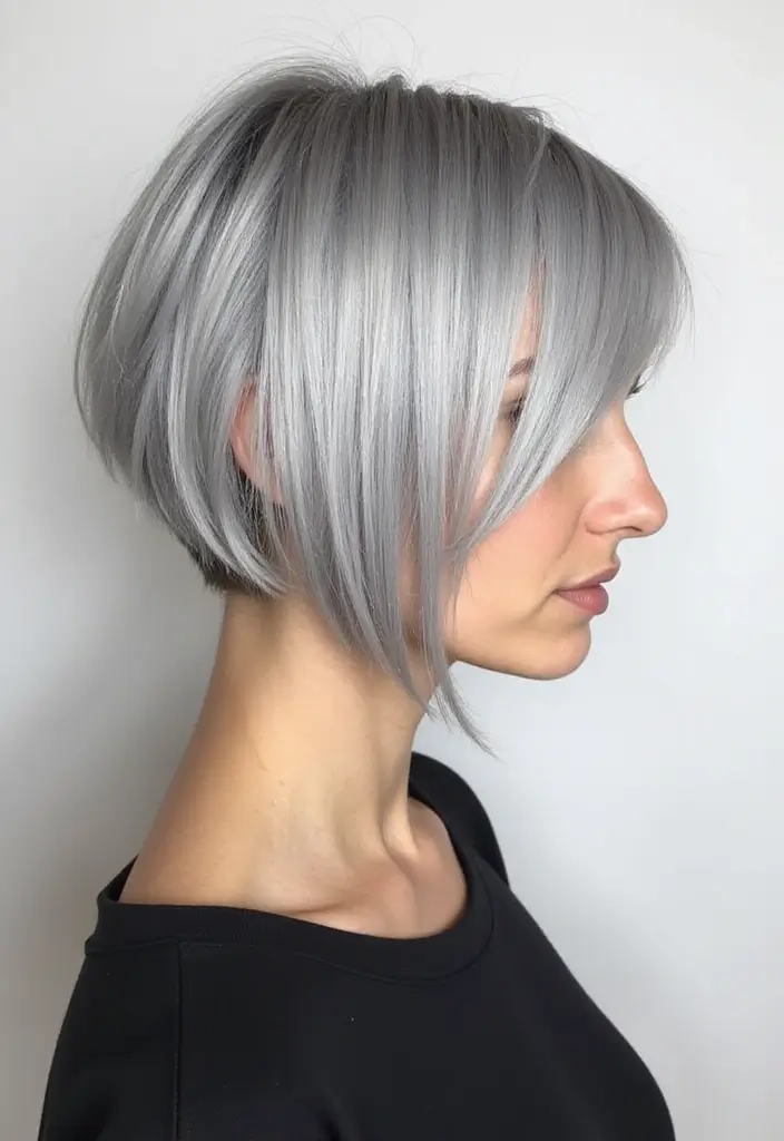 The metallic sheen adds a futuristic vibe while maintaining a classic cut. This hairstyle is excellent for women who want to make a statement without the commitment of longer hair.