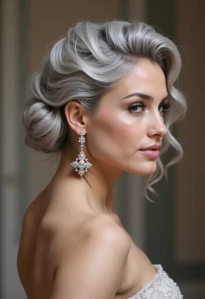 Vintage waves are a glamorous hairstyle that works beautifully with silver tones. This retro-inspired look adds elegance and sophistication to any outfit, making it perfect for special occasions or vintage-themed events.