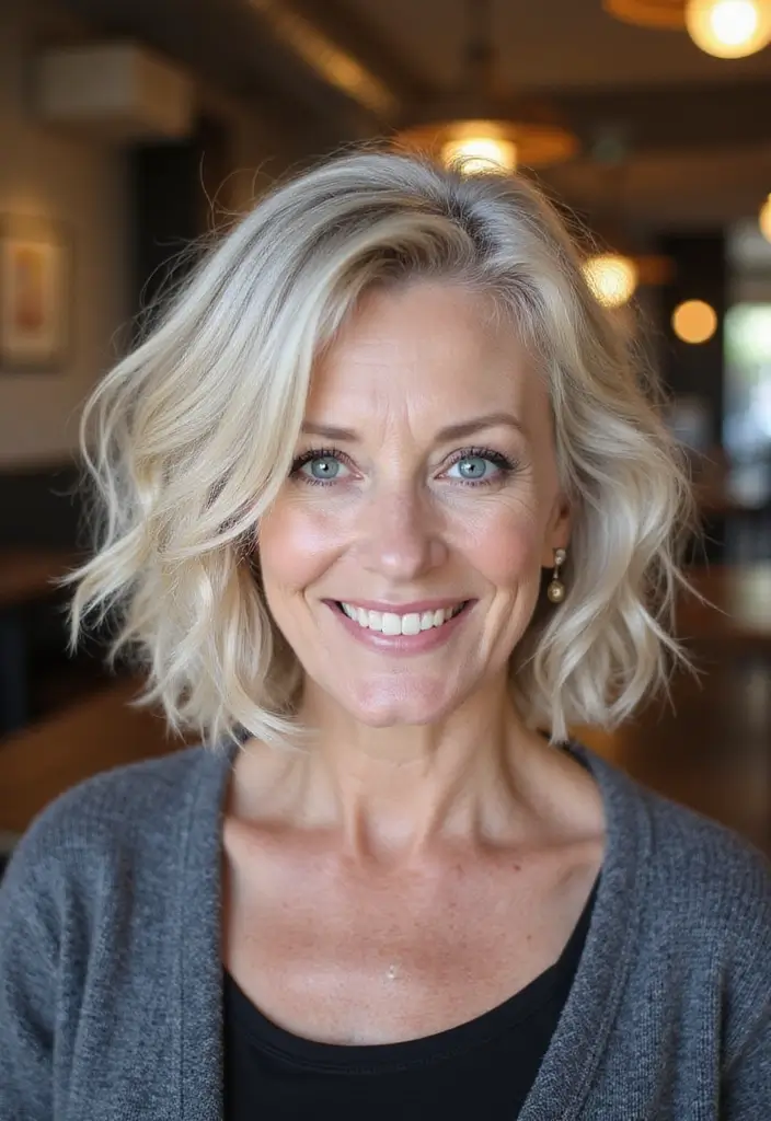 The beachy bob brings a relaxed, summery vibe year-round. This look embraces tousled, wavy textures that mimic the effortless style achieved after a day at the beach. It’s a fun, youthful take on the classic bob that works beautifully for older women wanting to spice up their look.