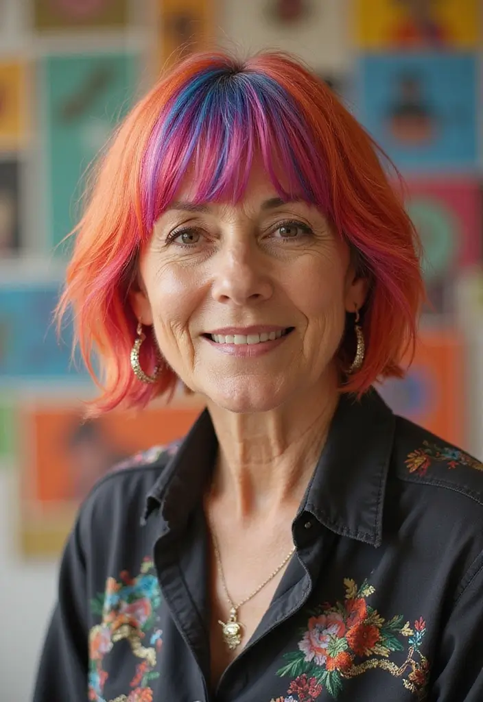 The bold color bob is an eye-catching style that allows older women to express their personality through vibrant hues. This look can feature rich reds, blues, or playful pastels, making it a perfect choice for the daring fashionista.