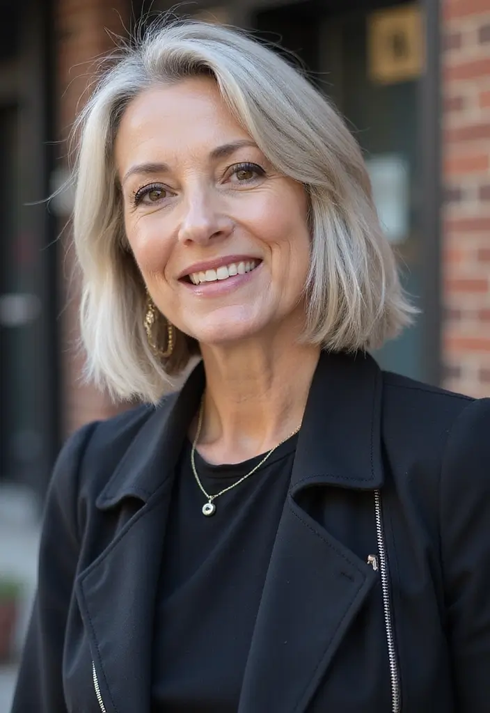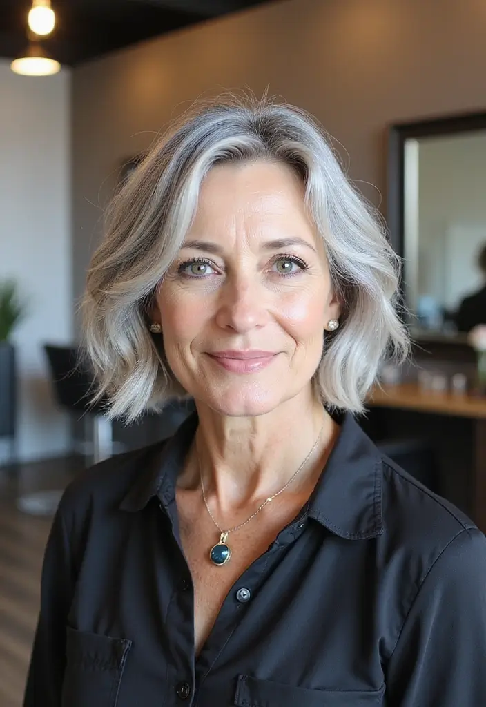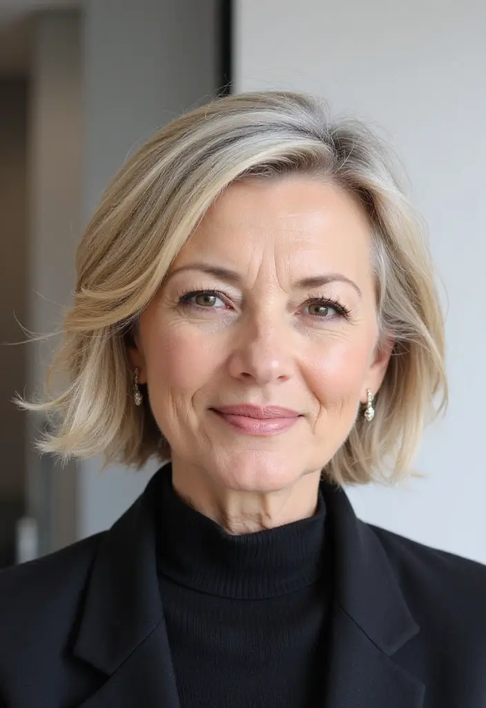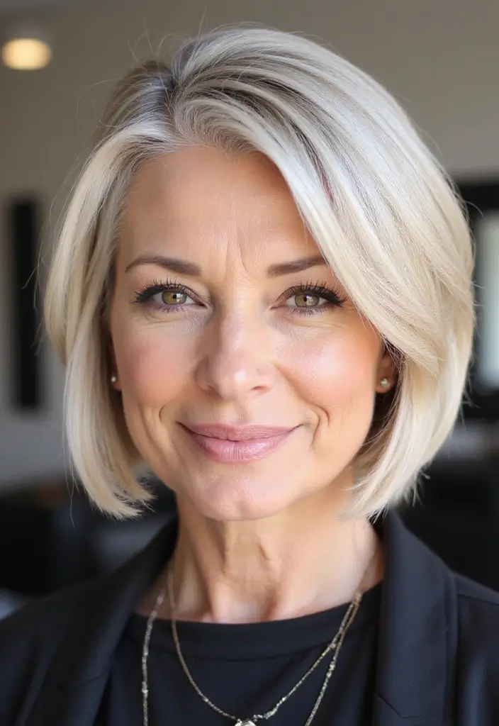 Sleek and sophisticated, the blunt bob remains a classic that never goes out of style. This hairstyle features straight, sharp lines that create an elegant frame around the face. It’s perfect for older women who desire a polished look without much fuss.