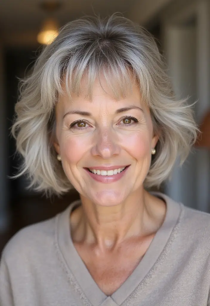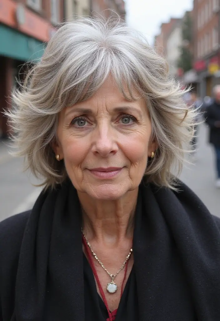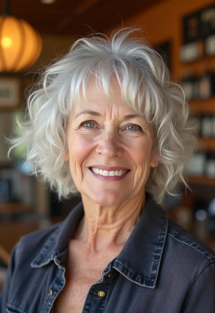 The textured shaggy bob is a playful option that combines the best of both worlds—texture and layers! This hairstyle adds volume and movement while maintaining a chic appearance. It’s ideal for older women who want a lively, youthful style.